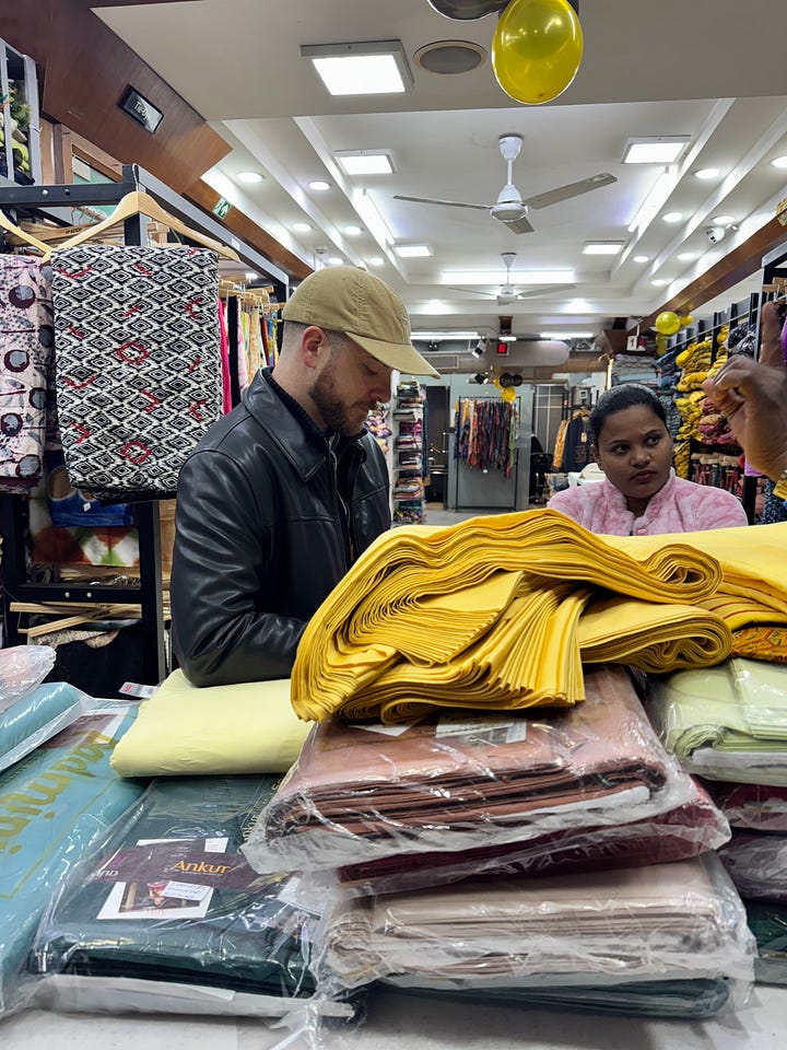 I’m writing from The Claridges in New Delhi. If you’ve been following along with this week’s Hotel Espresso and my personal IG, I’m here with our head of brand, designing HAP goodies for y’all that are super chic (picture below).